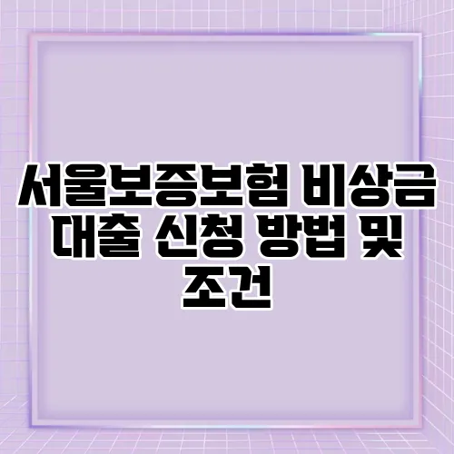 서울보증보험 비상금 대출 신청 방법 및 조건